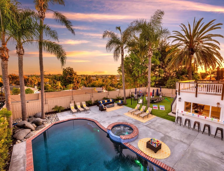 Discover our luxury vacation rentals in San Diego, featuring private pools and resort-style backyards, just minutes from beautiful beaches.